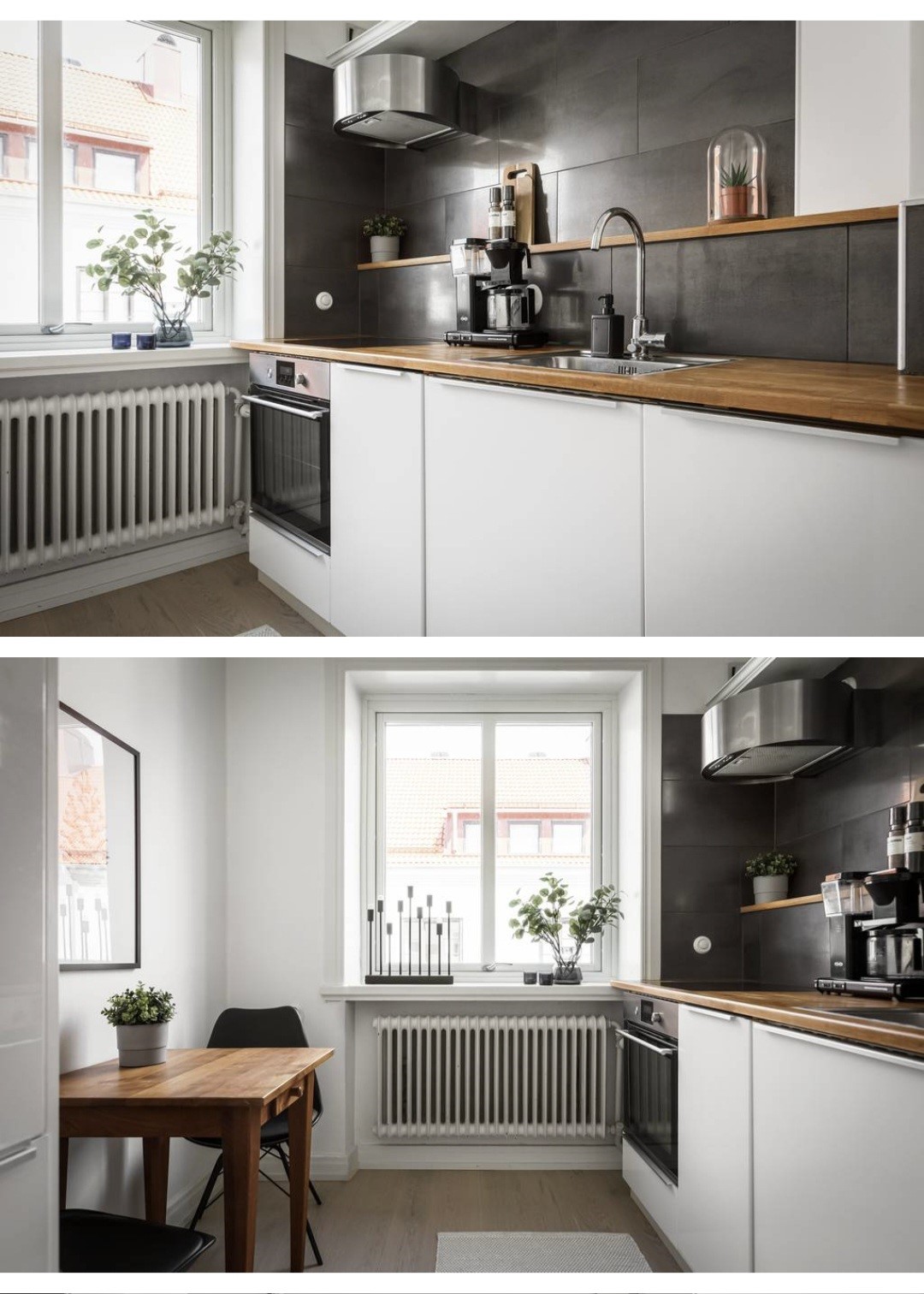 En mycket fräsch och fin enrummare men rymligt och nyrenoverat kök med diskmaskin och plats för en matplats.